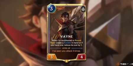 ヴェインは 3 マナで 3 攻撃、4 ヘルスのユニットです 彼女の進化条件は「あなたが4回攻撃するのを見た」です。 ここでのマナ コストとステータスの比率は平均を上回っています (平均的な比率では、4 ではなく 3 のヘルスが得られます)。