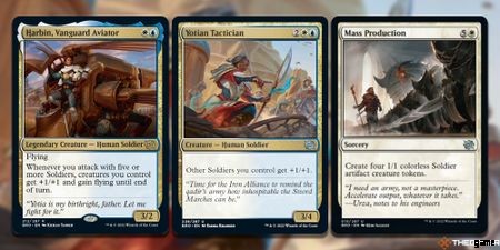 The Brothers' War の中で最も明確なドラフト アーキタイプの 1 つは、白と青の兵士クリーチャー タイプのテーマです。計画は単純です:多くの回避で相手を追い詰める前に、できるだけ多くの兵士を場に出しましょう。