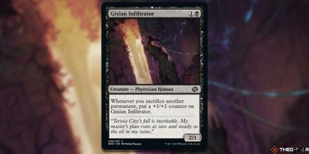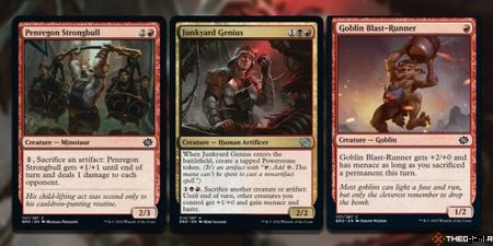 ジクシアンの潜入者にも注目 、あなたがパーマネントを犠牲にするたびに成長し、ゴブリン ブラスト ランナー 、ブロックしにくくするために何かを犠牲にするたびに脅威を獲得します。