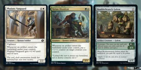 また、独自の ETB トリガーを持つアーティファクトにも注意して、より多くの価値を得られるようにする必要があります。 コンバット・スレッシャー スクラップワーク コホートのカードを引くことができます クリーチャー・トークン、ボルダーブランチ・ゴーレムを作る ウッドコーラー オートマトン あなたの土地をアニメートできます。ここでの目標は、見つけることができる限り多くの価値で対戦相手を圧倒することです。そのため、生成しているすべてのパワーストーンを使用して、これらのより高価な呪文を飛び散らせることを恐れないでください.
