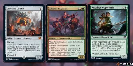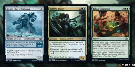 The signpost here is Battery Bearer , who gives your creatures the same ability as a Powerstone, while also rewarding your big plays with card draw. You’ll need to go all-in on the Powerstone production for this, so keep an eye out for things like Fallaji Excavation, Geology Enthusiast, Argothian Opportunist, Splitting The Powerstone, and Stern Lesson .