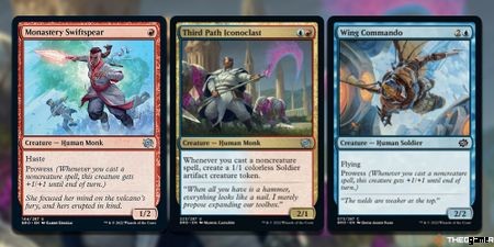Blue and red are playing it safe for this set, bringing back one of its most popular archetypes with the debut of prowess as a deciduous keyword. Prowess is an aggressive strategy that relies on you casting lots of noncreature spells to beef up creatures like Dwarven Forge-Chanter, Monastery Swiftspear, and Wing Commando.