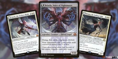 合体を持つパーマネントがトリガーされると、合体ペアの両方の部分が反対側に裏返され、1 枚の大きなカードになります。 .たとえば、壊れた刃のギセラと薄れゆく光のブルーナは融合して、悪夢の声のブリセラになることができます。