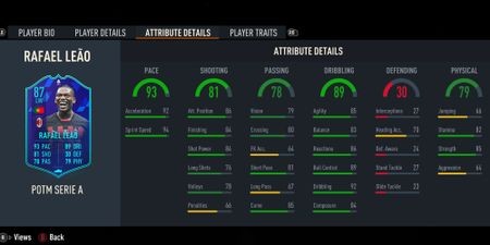 これらは素晴らしい統計です。 アーキテクトとともに 化学スタイル、Leao のパスが 86 に増加 ショート パス 96 回 そして99の強さ。このカードは、可能な限り最高の敏捷性と可能な限り最高の強さを持ち、Lengthy カードであるために完璧に位置付けられています。 EA はここで何をしているのかを正確に把握しています。