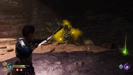 3つ目の巣をクリアすると、下のレベルに飛び降りることができ、橋に面しています.あなたはこの橋を渡りたいと思っています。小さな隙間を飛び越えて、照明が必要なトーチのあるチャンバーに到達します。左側には別の緑の障害物があり、右側にはメイン パスがあります。ソニックアローで障害物を撃ち、メインチャンバーへの通路を開き、右に向かいます.あなたは別のトーチに火をつけます。ここには別の分かれ道があります。左に曲がりたい