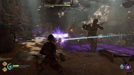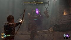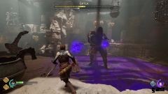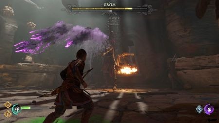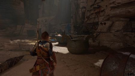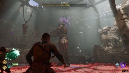 戦闘の開始時に、壁の後ろを急いで進みます。収集する宝物はありません。Angrboda に従って、キッチンに忍び込み、ボウルを刺すだけです。あなたは平手打ちされ、戦いが始まります。ここでの目標は、ボウルが脆弱なときに撃つことです。 前面の光るルーンが見えるので、ボウルが脆弱な時期がわかります。 それ以上は、彼女の攻撃をかわすだけです。