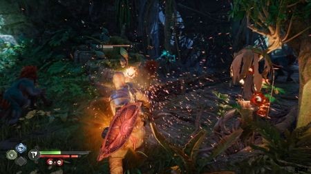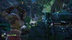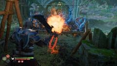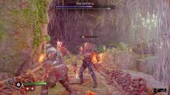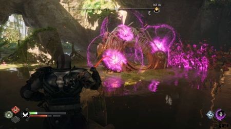 乗り越えたら、ギュロンの群れと戦うことになります。それらはたくさんありますが、使用するためにステージの周りに散らばっているいくつかの便利なインタラクティブなオブジェクトもあります. Gulons を一掃すると、石造りの建物に宝箱があります。 今度は洞窟を移動します。メイン パスに戻ると、新しい有毒植物があることがわかります。膨張する有毒植物と戦わなければならないだけでなく、酸を吐き出すものもあります。ただし、それらに対処する方法は変わっていません。斧の鋭い先を彼らに渡してください。