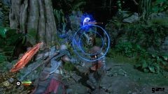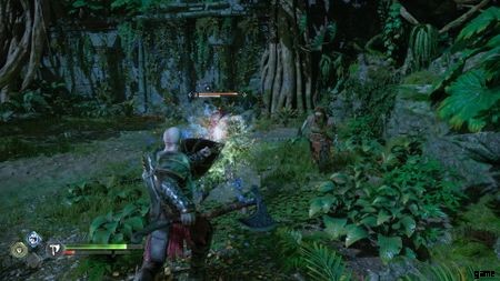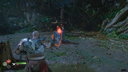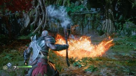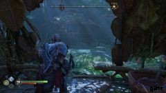 グラドゥングルを倒すと、近くに洞窟が出現。それを登り、川に出るまで小道をたどります。反対側のイバラのため、飛び越えることはできません。それで、Freya に矢でヘクスの列を作ってもらい、そこからあなたの刃が届き、茨まで伸びます。 次に、Blades of Chaos でそれらに火をつけます。さあ、飛び乗ってメイン パスを進みます。