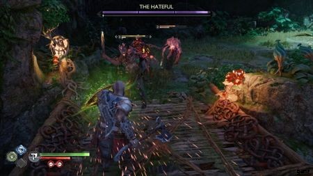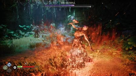 したがって、あなたの目標は、ヘイトフルの仲間を殺し、ヘイトフルの攻撃をかわし、気絶を蓄積し、ダメージを与え、火の攻撃がパワーアップしたら、遠くから斧を投げることです。 The Hateful は大量のダメージを与え、高速で、予測できない可能性があるため、これは実際よりもはるかに簡単に聞こえます。彼を追い続ければ、最終的には彼を始末することができます.