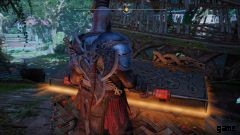 これで、2 つの Einherjar と戦うエリアに入ります。 これらの戦士は、ビフロスト効果を適用する攻撃を行うという点で、ジャーンスミダ ピットマインで戦った戦士と似ています。 彼らは主に受け流し可能な斧のスワイプで攻撃します。彼らは一時的な盾を上げることができます。しかし、もしそうなら、彼らに昔ながらのシールドバッシュを与えてください.一般的には、パリーを探してスタンを上げ、処刑攻撃でとどめを刺します。また、青いインジケーターが付いた攻撃もあります。これはもちろん、妨害するとシールド バッシュが追加のスタンを行うことを意味します。