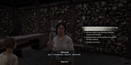 女性が独身でパートナーを探している場合は、彼女をロマンスする必要があります。これは、話し、「ロマンス」オプションを選択することで実行できます。これをクリックすると、一連の会話の選択肢が表示されます。女性に言うオプションを選択します。彼女があなたの言葉に満足すれば、あなたは愛情を得るでしょう.