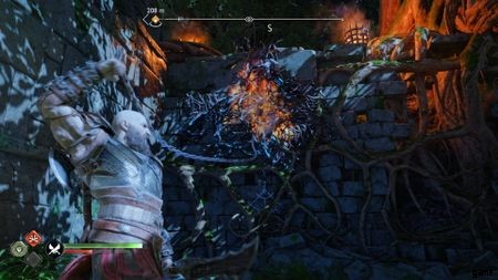 Einherjar を一掃すると、アリーナに収集するものは何もなくなります。 ゲートを上げて、右に曲がります。いばらを燃やし、よじ登って宝箱をつかみましょう。