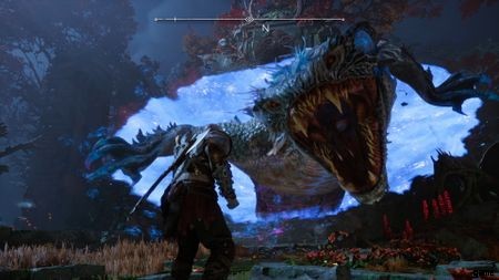 In this phase, Nidhogg has a lot of the same attacks, but they definitely come out much faster. He will also string them together now. Nidhogg will occasionally swipe at you with his claw in his second form as well. His big new move is his tail plunge. He will stick it into the ground, and after a period of time, it will erupt. However, this is a blue indicator attack, so you can shield bash it, and stagger him. You will want to get up close and personal with this phase. Beyond that, it is more of the same, really. You likely won't struggle too much against him here.