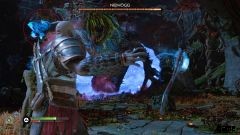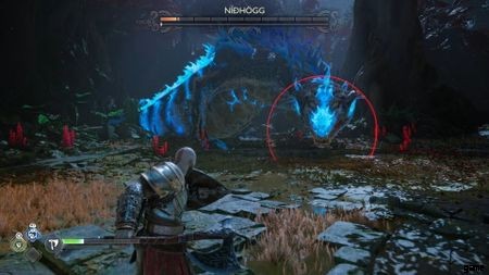 In between attacks, Nidhogg will often take large pauses. That will be your time to land hits. After a while, you will be assisted by Freya, who will give you targets to hit with your axe or blades (it depends on which column Nidhogg is clinging to). Once she does, you will be able to topple the giant creature and really lay into it. It won't take long for the mighty Nidhogg to fall after you start pulling those columns down.