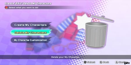文字を削除したいとします。まず、タイトル画面から「マイキャラ作成・編集・削除」メニューに入ります。次に、「マイ キャラクターを削除」 を選択します。 削除するキャラクターを選択するためのキャラクター選択画面が表示されます。 注:4 人のゲスト キャラクターは削除できません。