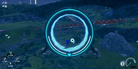 ホーミングアタックで砂時計を叩き、チャレンジを開始します。ゴールへの簡単な道のために、あなたの目の前にあるリングのラインに従ってください. 45 秒あるので、道に迷った場合でも進路を修正する十分な時間があります!
