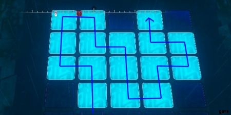 戻ったり降りたりせずに、点灯しているすべてのタイルを踏んでください。正方形に入るだけで、チャレンジを完了できます。