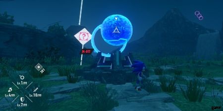 台座周りのサイループを使って発動させ、ループから現れる青いボールをホーミングアタックでノックする。