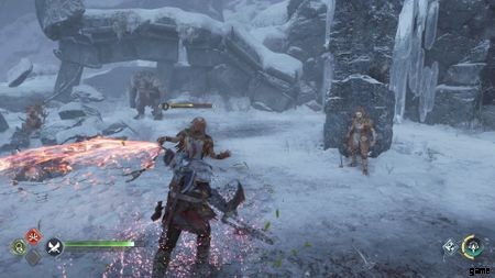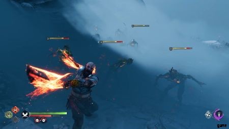 オーガから距離を保ちながらアリーナを一周し、斧を投げてレイダーを倒します。 レイダーを倒すと、ヘルレイダーとして復活します。その場合、彼らのヘルス バーは青色になります。この最初のヘルス バーをクリアするには、Blades of Chaos を使用して火のダメージを与える必要があります。