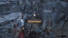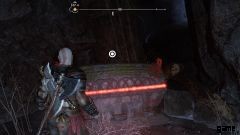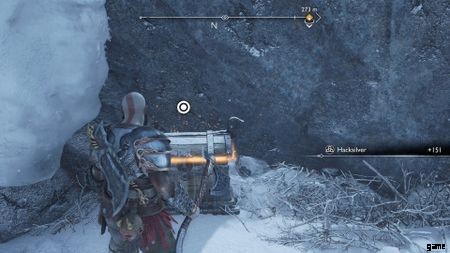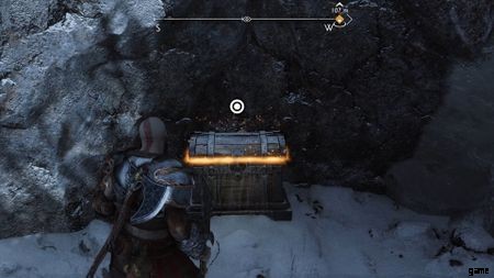 次の停留所は地図の反対側です。 マップの南西隅に隠れています。 到着すると、宝箱が待っています。 左側にもカラスがいます。それを取り出す。 あなたは別の幻想的な壁を見つけるでしょうが、最初のように、その後ろには何もありません. Frost Gradungr に攻撃されます。
