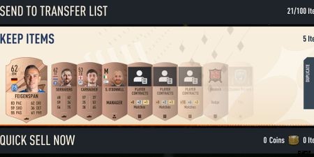 - パック内の他のもの (コントラクト、スタジアムなど)、コインの価値がないものはすべて破棄します