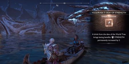 2 つ目の露については、フレイの野営地から北に向かいます それを見つけるためにボートドック。集めるとユグドラシルのルーンの力の露が手に入ります . ルーン文字を永続的に増加させます