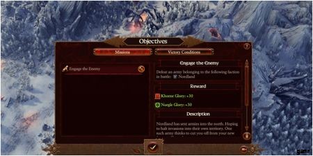栄光を獲得 特定のカオス ゴッドを使用すると、グローリー バーが進行します。 ユニットのロック解除、パッシブ特典、主装備。 Chaos Undivided にもバーがあり、より一般的なボーナスを提供しますが、より大きな柔軟性を可能にします。 栄光 戦闘の勝利、入植地の攻撃、キャンペーンの目的、ジレンマなど、さまざまなソースから獲得できます。