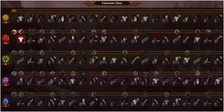 明確に定義された利点を提供するだけでなく、アタッチメントはセットにも分類できます。 同じセットから一定数のピースを装備すると、ユニークなボーナスがアンロックされます 、彼らはあなたの主の力を大幅に強化することができるので、強力なものに注意してください. Daemonic Glory を進めていくと、より強力な装備とセット ピースのロックが解除されます