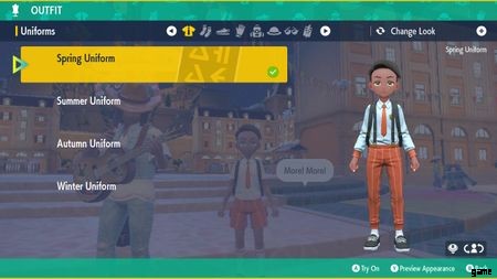 カスタマイズ メニューが開きます 春、夏、秋、冬のユニフォームから選択できます。 そこにいる間に、靴下、靴、手袋、バックパック、帽子、メガネなどのアクセサリーをスクロールして、その場で試着したり交換したりできます.
