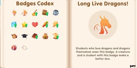 長生きするドラゴン | 同様に、このバッジを持つ生徒はドラゴンが大好きで、ドラゴンとより良いコンビを組むことができます。 |