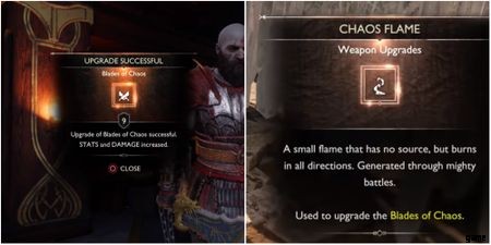 混沌の刃 ゲームの開始時から持っている主要な武器の 1 つです。武器のアップグレードにはカオス フレイムが必要です。 クラフト素材です。 ゲームには 8 つのカオス フレイムスがあります。 ブレードをレベル 9 にアップグレードするために使用できます。