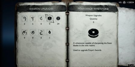 Thrungva は Freya の主要な武器です。 使用します。アップグレードにはフォークヴァング砥石が必要です .アップグレードには 2 つの Folkvangr Whetstone が必要です。