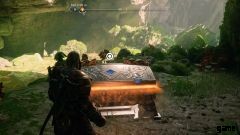 右側には、破壊する必要があるつるの壁があります。 Atreus の印の矢を使用して hex を配置し、Blades of Chaos でそれらを燃やします。タッツェルヴルムのペアがあなたを待っています。この辺りにもノッケンがぶら下がっています。それらに対処したら、赤い胸をつかみます。胸を空にしたら、メインパスに沿って移動します。 ただし、最初の左折すると、伝承の巻物とノルニルの宝箱があります。 ノルニルの胸のパズルを解く前に、胸を通り過ぎて近くのウルバーを倒してください。彼があなたの邪魔にならないように。