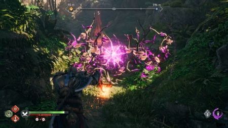 キャンプの北セクションを通ってキャンプを出ます。 Hildisvini をたどり、Berri の森の東に向かって進み、壁に裂け目ができた岩壁にぶつかります。槍で吹き飛ばせば先に進めます。直線的な道をたどり、隙間を飛び越え、隙間をクロールします。終了すると、エンシェント ガーディアンと戦ったのと同じエリアにいることに気付くでしょう。ストーカーがお出迎えします。