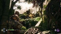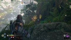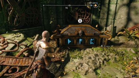 Nornir のチェストについては、Wolvur を倒したら、向こう側を見てください。ノルニルのルーン文字が書かれたターゲットが表示されます。 C に似たルーン文字が表示されるまで、斧でターゲットを攻撃します。 さて、次の標的は胸のすぐそばだ。 それを叩いて、ルーンをFに見えるルーンに変更します. 最後の (見方によっては最初の) ターゲットは、チェストのある建造物に入る直前の左側にあります。 蔓に覆われています。そのため、アトレウスにシジルの矢でヘクスの列を配置させて、それらに点火させる必要があります。次に、ターゲットをヒットし、P のようなルーンが表示されていることを確認します。それでいい。宝箱を開けて Idunn Apple をつかみます