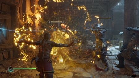 あなたはスルードと一緒に地元の酒場に向かいます。あなたの武器はあなたから剥ぎ取られ、トールとの短い会話の後、予想通り、大乱闘に巻き込まれます.最初のフェーズでは、武装していない多数の Einherjar と対決します。 彼らのパンチはどれもかなり遅いので、非常に パリィしやすい。 弓で叩きつけて、イングリッドに斬らせれば、すぐに通り抜けることができます。