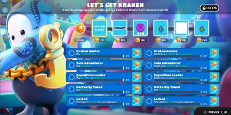 10 個のイベント チャレンジがあります。 ゲームで現在利用可能なさまざまなショーでさまざまなタスクを実行する必要があります。これらの各チャレンジを完了すると、イベント通貨 100 を獲得できます。 Let's Get Kraken イベントで提供されているさまざまな報酬を引き換えるために使用されます。
