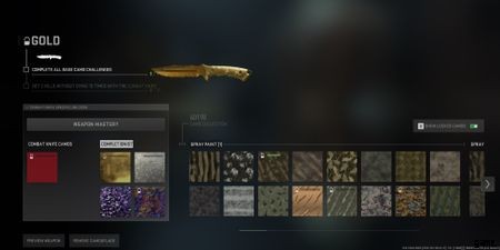In other words, you must land 1,000 kills with 51 weapons in MW2 to finish the weapon mastery grind. This isn't difficult but rather time-consuming, requiring you to frequently swap weapons and camos to make incremental progress. Completing all weapon mastery challenges grants some type of reward (as mentioned in an MW2 launch post), but this reward is unknown as of the publication of this article. Some community members have speculated that camo mixing is the reward for this monumental grind, yet this hasn't been confirmed or datamined.