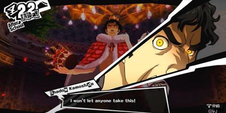 シャドウカモシダにダメージを与えるほど、リュウジまたはモルガナが王冠に近づきます。彼らが 2 階に到達すると、カモシダ シャドウがあなたが盗賊であることに気付く短いカットシーンによって中断されます。彼にとって残念なことに、彼は気付くのが遅すぎます.あなたが送った人は誰でもシャドウカモシダの頭から王冠を叩き落とすでしょう.