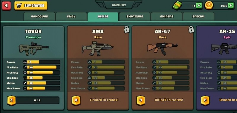 良い組み合わせの例は、ライフルとショットガンです。ショットガンはダメージが大きいため近距離での戦闘に最適ですが、ライフルはあらゆる状況で役立つ万能武器です。 2つを切り替えることができると、戦闘中に非常に役立ちます.各カテゴリにはさまざまな銃が用意されていることを忘れないでください。それぞれに独自の長所と短所があります。それぞれの武器の最適な使用方法を確認するには、統計を確認してください。