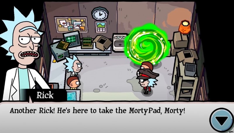 まずはゲームのストーリーから。あなたは、ガレージでモーティに喜んで怒鳴っているリック・サンチェスの役割を果たします-少なくともリックの1つのバージョンです.その後、派手な服を着た別のリックとモーティのデュオがあなたの一日を中断し、あなたを別の次元に連れて行くことにしました.そこに着くと、宇宙には進行中の傾向があることに気づきます。そして、それは何百ものモーティと戦っています。あなたの仕事は、自分のモーティ チームを訓練し、戦い、進化させ、リックス評議会に挑戦して自分の人生を取り戻すことです。