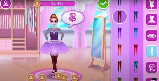 Pretty Ballerina では、キャラクターのドレスアップだけでなく、バレエの振り付けも作成します。一般に、ゲームには 3 つのレベルがあります。まず、アバターが演じるダンスの振り付けを作成する必要があります。 2つ目は、ショーのテーマに従って彼女をドレスアップすることです。最後に、メイン プレゼンテーションです。