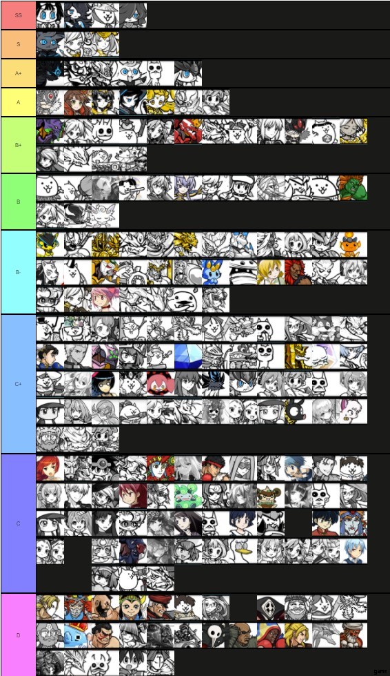 以下のティアリストは、2021 年 9 月 24 日に公開されたアップデート 10.9 に基づいています。このアップデートでは、「The Aku Realms」と呼ばれる新しいストーリーモードが導入され、一部のユニットのバランス調整が行われました。以下のリストは、The Battle Cats コミュニティから提出された 50 を超える層リストの平均です。ユニット数が非常に多いため、SS、S、および A+ ティアに属するユニットの概要のみを簡単に説明します。それはさておき、TierMaker の厚意により以下の層リストをチェックしてみてください。