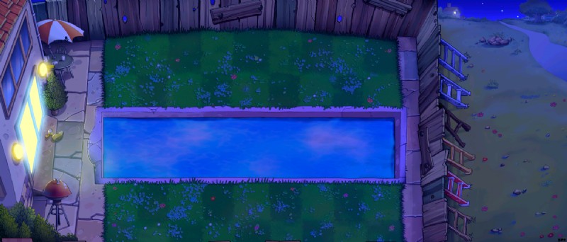 The Pool Area introduces aquatic plants to the game. In this area, the pool will consume two of the six lines on your lawn. You need to plant Lily Pads before you can plant any type of seeds in the pool. In addition, you will also unlock the following seeds in the game:Squash, Threepeater, Jalapeno, Spikeweed, Torchwood, and Tallnut.