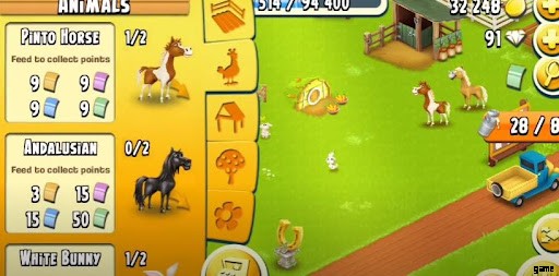 この動物タイプでは、ベイとピントを飼うことができます。そして、馬を手に入れるには、まず馬小屋を建てる必要があります。うさぎやロバと同じように、馬は経験値と引き換えにニンジンを食べます。ベイは 60 の経験値を与え、ピントは 100 の経験値を与えます。ベイをファームに入れるには、緑 9 個、青 10 個、紫 8 個のバウチャー、または 835 個のダイヤモンドを支払う必要があります。ピントの場合は、緑が 9 個、青が 9 個、紫が 9 個である必要があります。ゴールド バウチャー 9 個またはダイヤモンド 1575 個と交換。