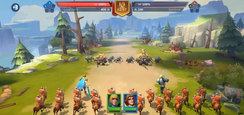 ゲームの戦いは 2 つの異なる方法で行われます。しかし、主にそれらは自動化されており、特に世界地図でノームを攻撃するときや、他のプレイヤーの都市を攻撃するときはそうです。最初に自軍が出撃し、短い戦闘アニメーションが表示されます。その後、ゲームは勝者を教えてくれます。時の井戸で衝突すると、ゲームは地上でズームします。同時に、あなたは自軍が敵と衝突するのを見ています。戦闘はほとんど自動化されていますが、肖像画をタップすることで不死者の力を利用できます。