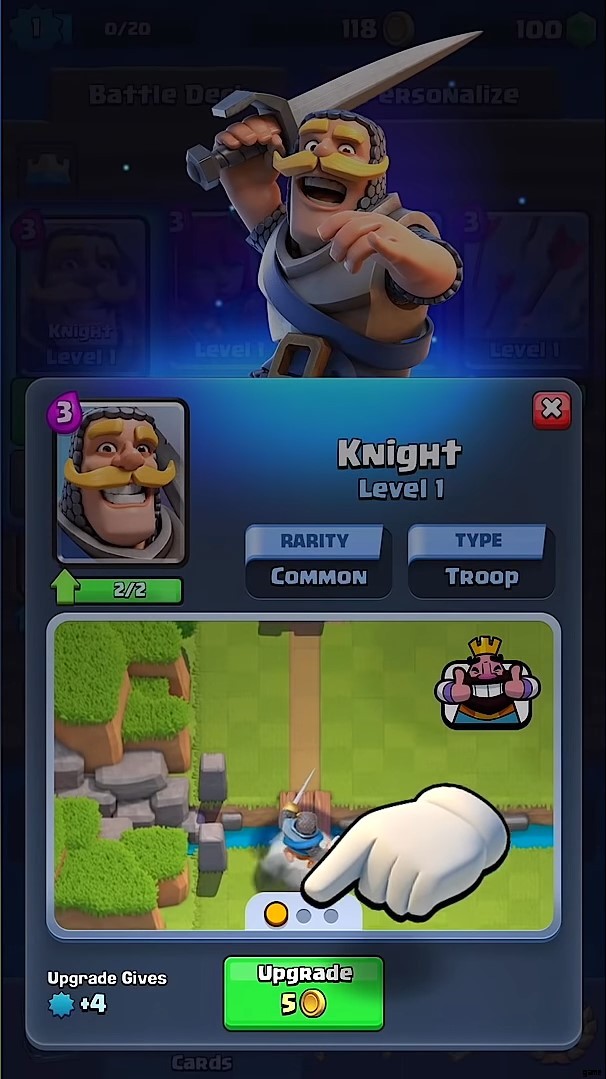 タンクになるか、そこそこのダメージを与えるのが一般的なカードです。一見弱そうなカードですが、秘められた防御力を発揮すること間違いなしです。しかし、この退屈な騎士を競争力のある戦士に変えたい場合は、アップグレードするのが最善です.