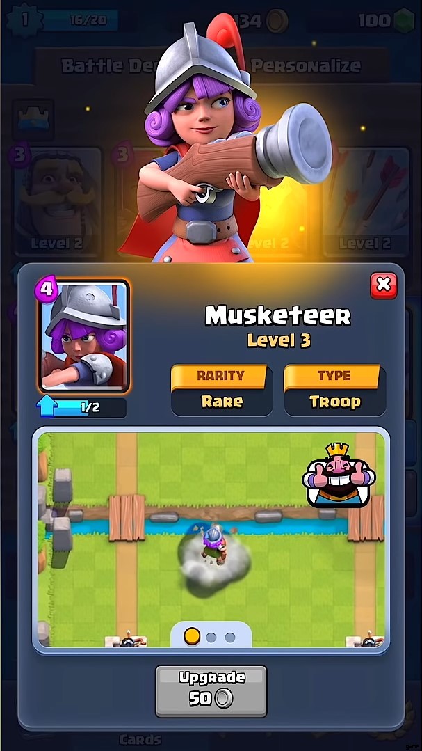 Musketeer は、Clash Royal ビギナーのデッキに入れなければならないもう 1 つのレアな部隊カードです。軍隊、地上、空中をサポートできる素晴らしいカードを探しているなら、このカードはあなたにぴったりです.