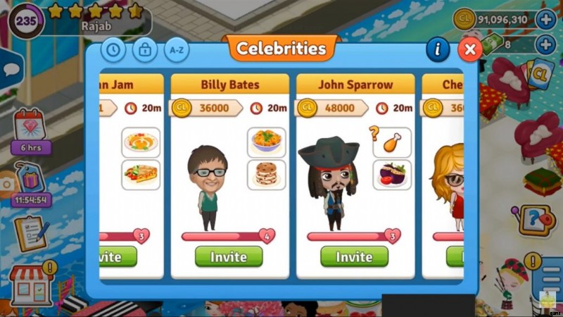 カフェランドのセレブを招待する際に覚えておくべきもう 1 つのことは、各パーソナリティがカフェに到着するまでに独自の待ち時間枠があることです。あなたはまだ料理を準備することができ、あなたのカフェを何時間も滞在する価値のある場所にすることができるので、それはあなたにとって有利です.さらに、有名人にはそれぞれ好きな料理があることに注意してください。お気に入りの料理を提供している可能性がある場合は、その訪問により多くの経験値を獲得できます。有名人にアクセスすると、好きな食べ物のカテゴリのみが表示されます。そのため、有名人が来る前に、そのカテゴリの料理を前もって準備しておくことをお勧めします。