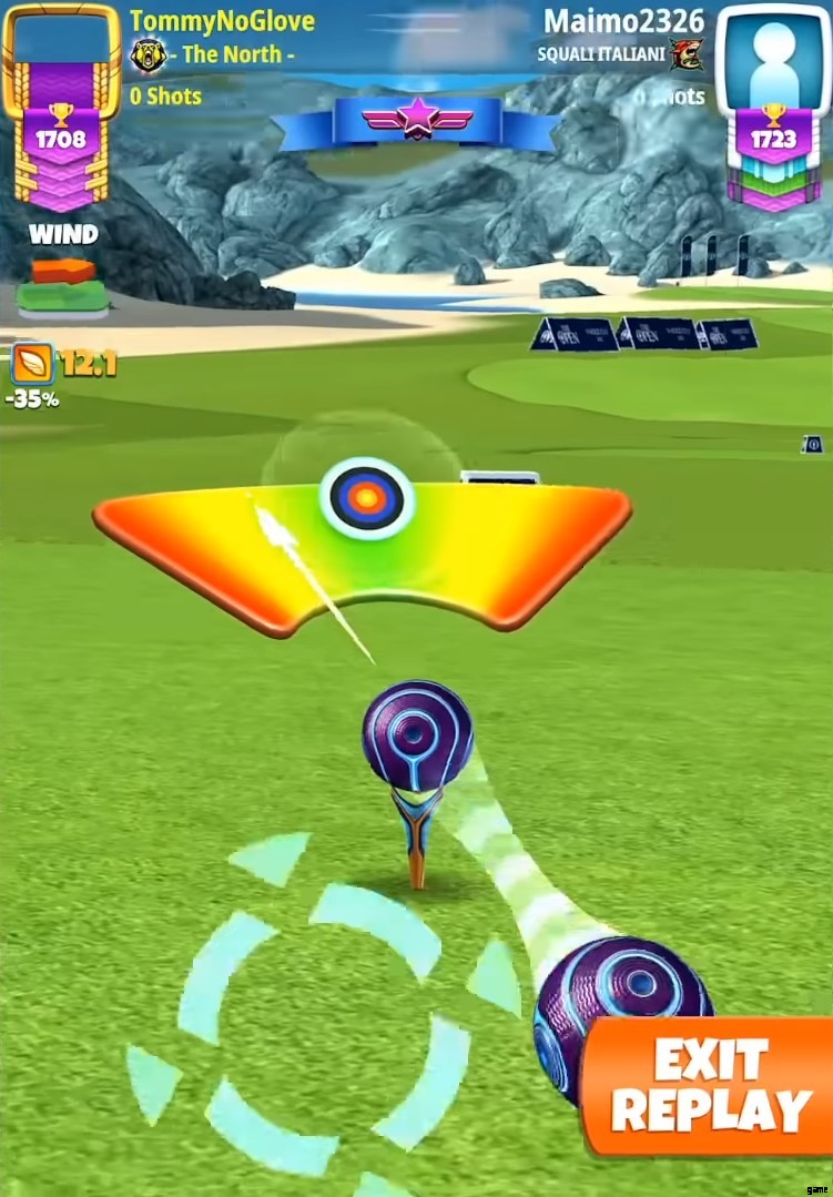 ゴルフクラッシュのもう1つのヒントとコツは、パットの仕方を学ぶことです。ボールがホールに近づくと、Golf Clash のコントロール システムが少し変化します。通常の射撃と同じように、矢を引き戻して射撃する必要があります。しかし今回は、通常のブルズアイ ターゲットではなく、ボールの軌道を示す光の経路が表示されます。さらに、パスに沿って配置する必要がある小さな針が表示されます。あなたがする必要があるのは、穴にまっすぐ入るようにパスを移動することです.次に、針が完全に揃うまで待ってから、ボールを放します。